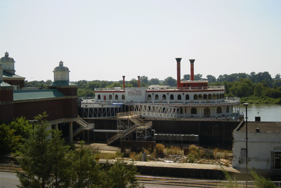 Das Casino ist ein alter Raddampfer welcher in einem Seitenarm des Mississippis liegt.
