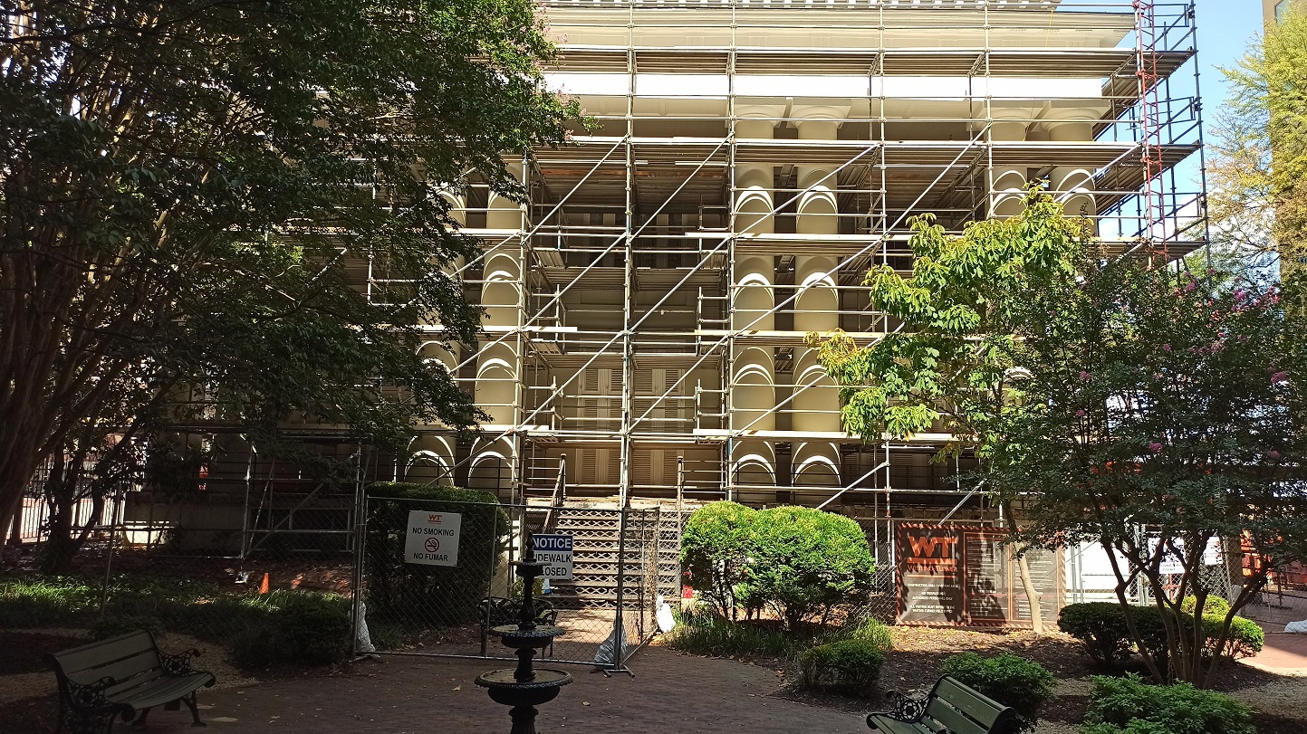 Es war dadurch von Baugerüsten umgeben und das Museum auch geschlossen.